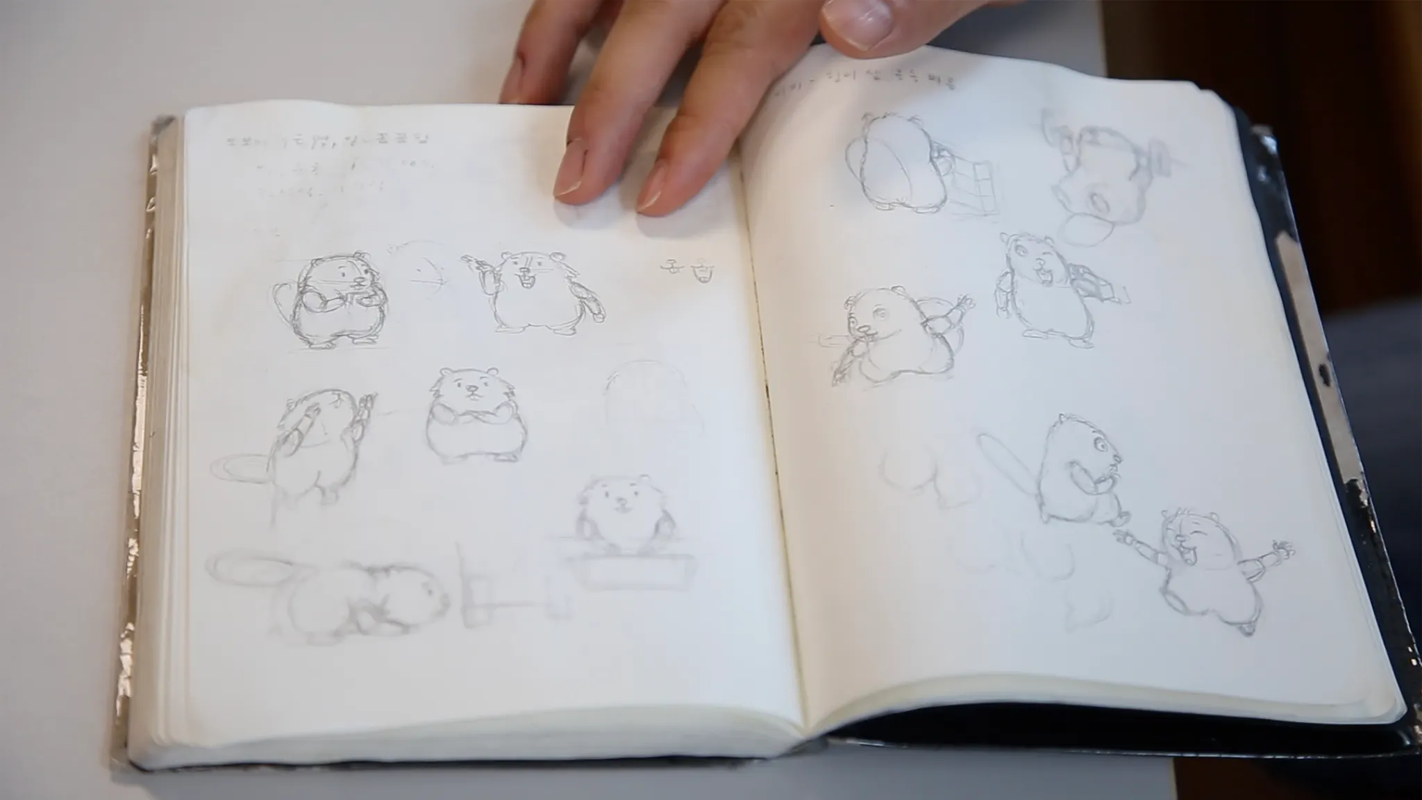 박병준 디자이너의 스케치 노트에 빼곡한 '브라보 비버' 캐릭터의 초기 스케치